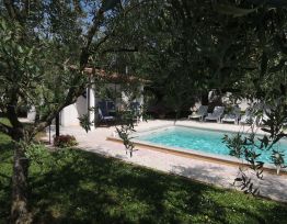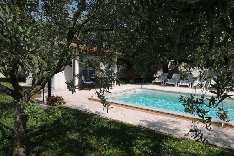 Resort LORENA Porec Bungalow & Ferienwohnung, im Ortsteil Portun, ausserhalb des Ortes, 2,5 km vom Zentrum, ruhige, sonnige Lage, im Grünen. Zur Mitbenutzung: Garten (eingezäunt) mit Rasen, Obstgarten, Liegewiese, Schwimmen Sie Ihre Runden im Pool – mit Salzwasser, (9 x 4 m, 01.05.-16.10...