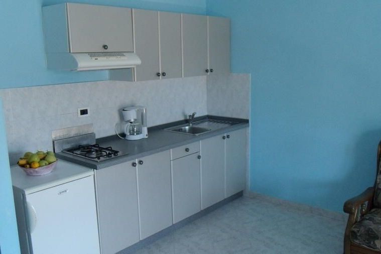 Terrasse Küche Kaffeemaschine Kühlschrank Geschirr und Besteck